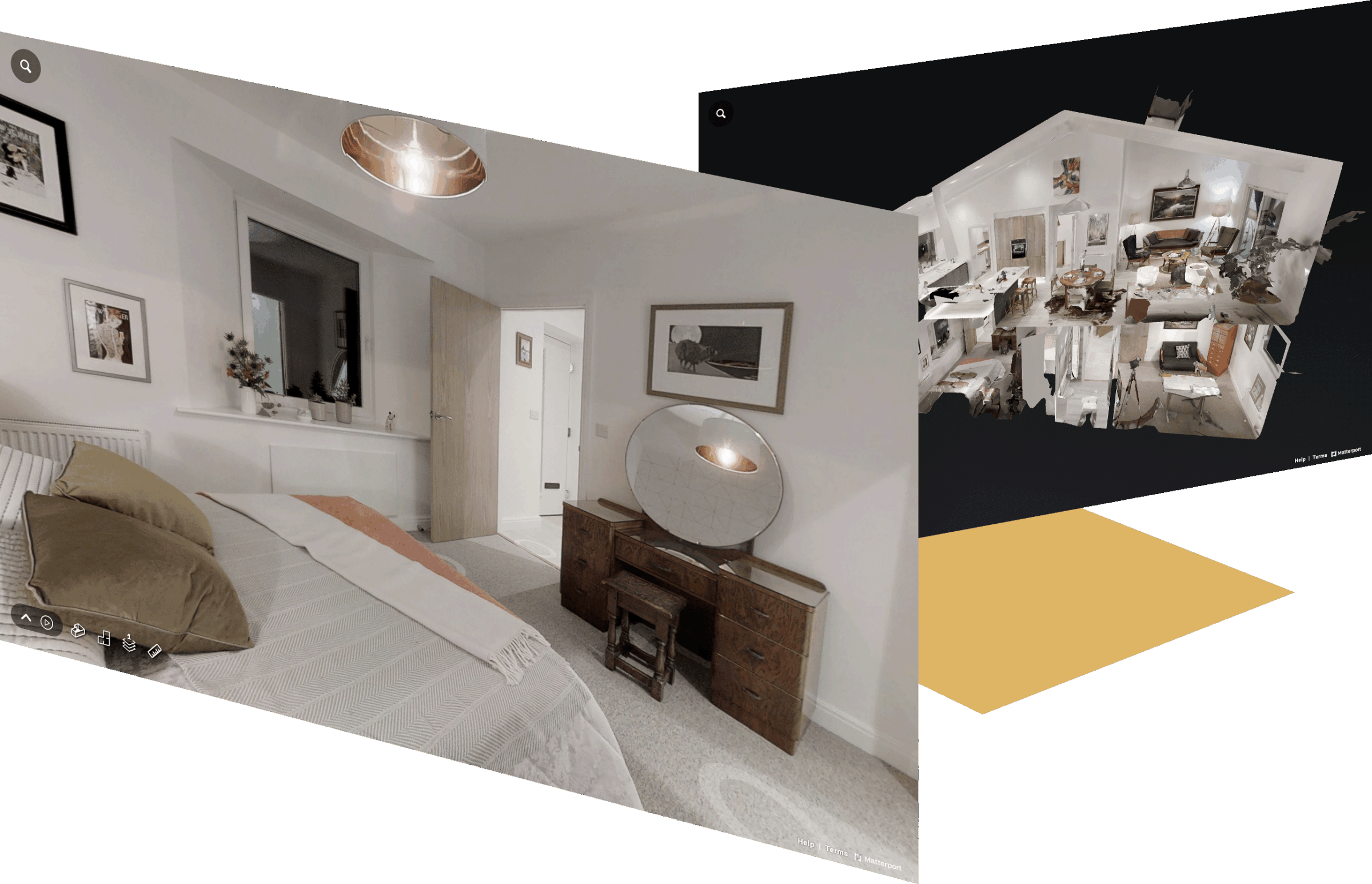 AI software then our turns scans and spacial measurements into an interactive 3D model, identifying objects within rooms, reconstructing the space into an immersive virtual tour and floor plans that resemble a photorealistic dolls house.