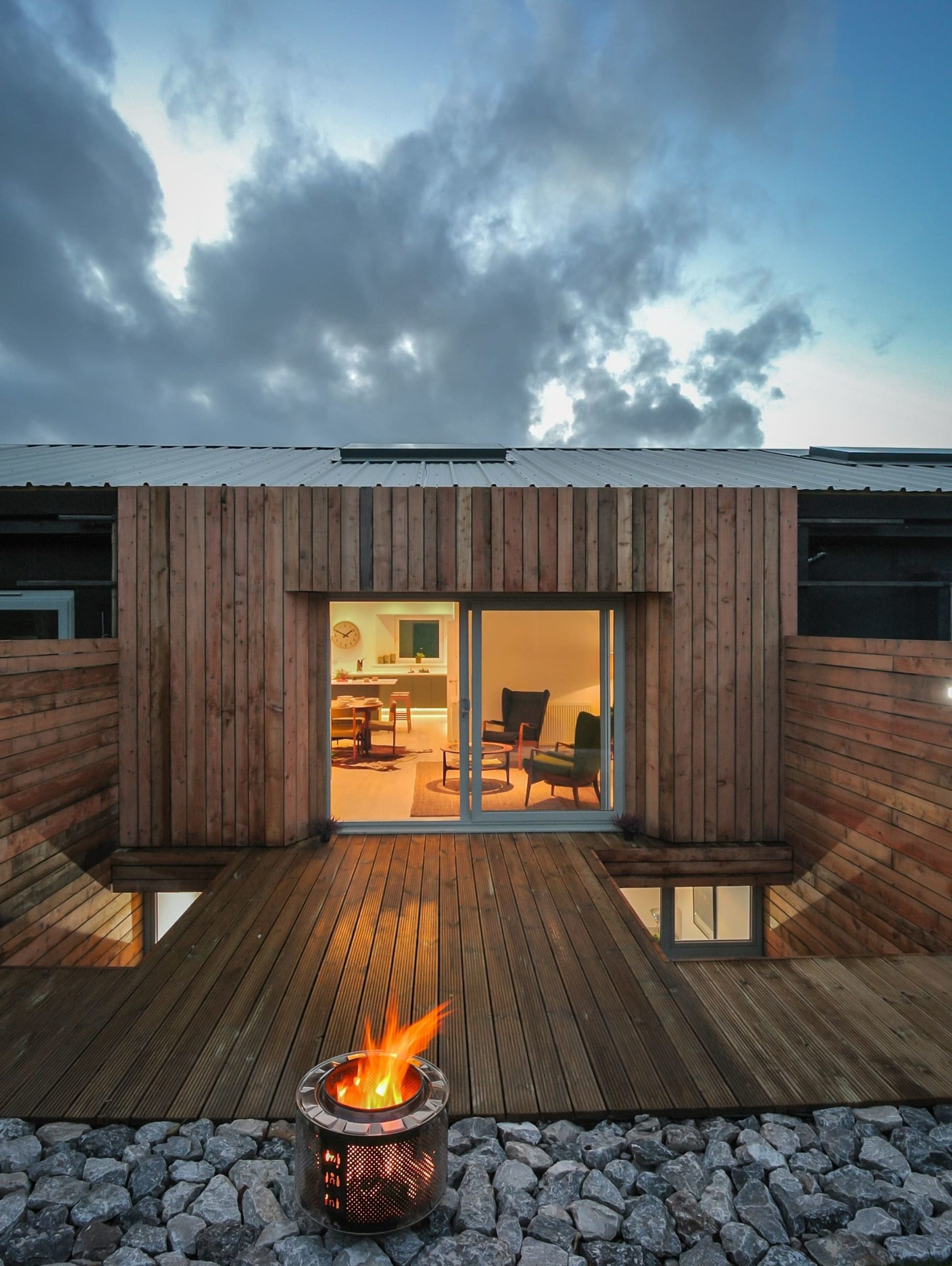 Larch weathers relatively slowly, often taking two years to reach a silver-grey patina – which is quite consistent and is not reactive, as such, will weather relatively evenly. Northerly elevations may weather to a darker grey than those facing South.