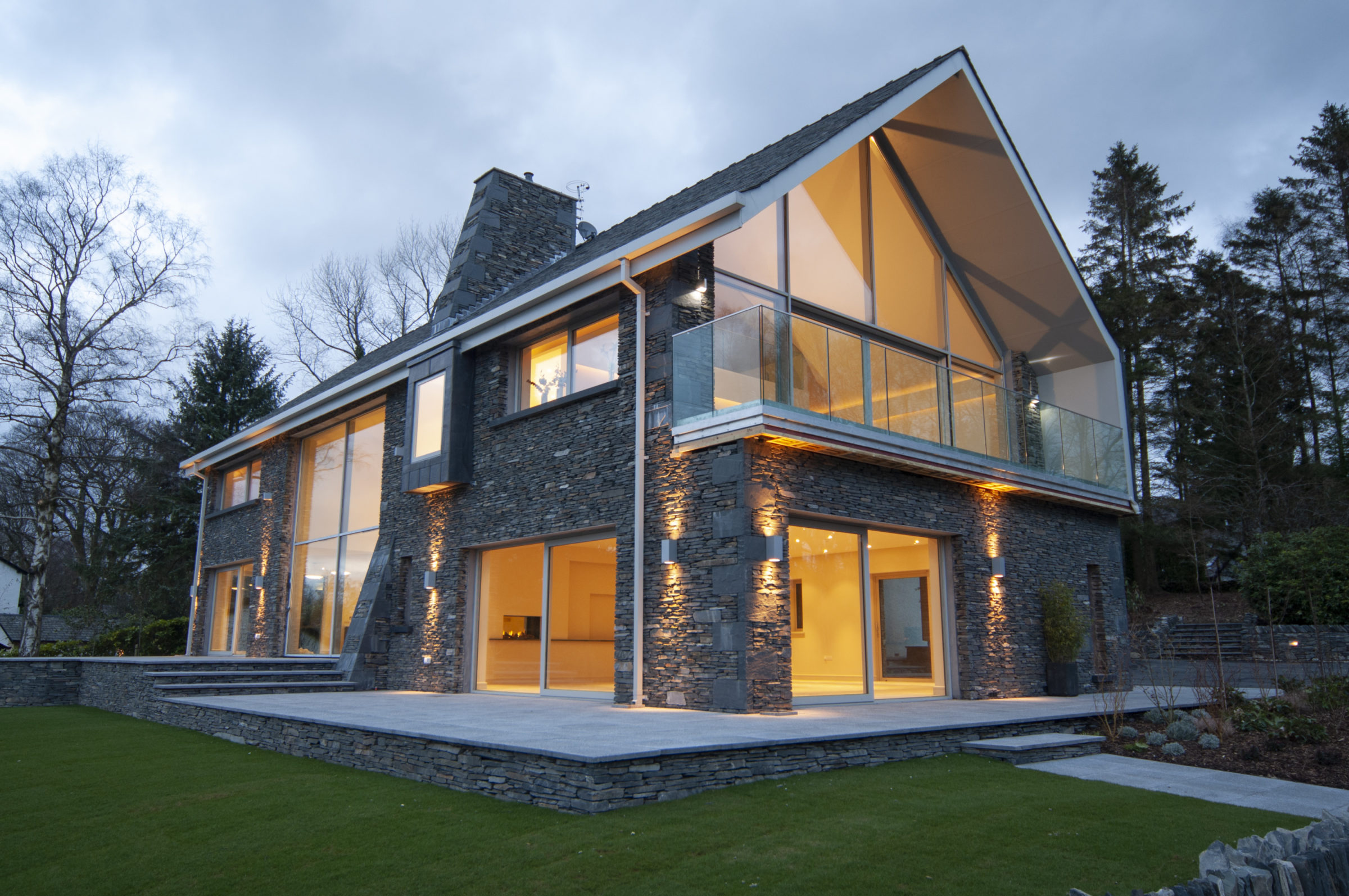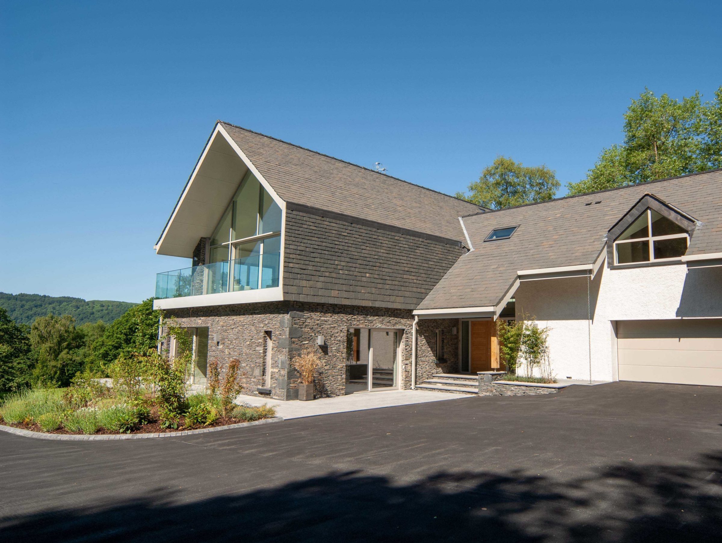 We replaced a tired 60’s bungalow with a state-of-the-art, made-to-measure home. Re-working the lines of classic Lakeland vernacular — creating masses of volume, light and fine detailing, resulting in an ultra-modern building with unmistakable presence.