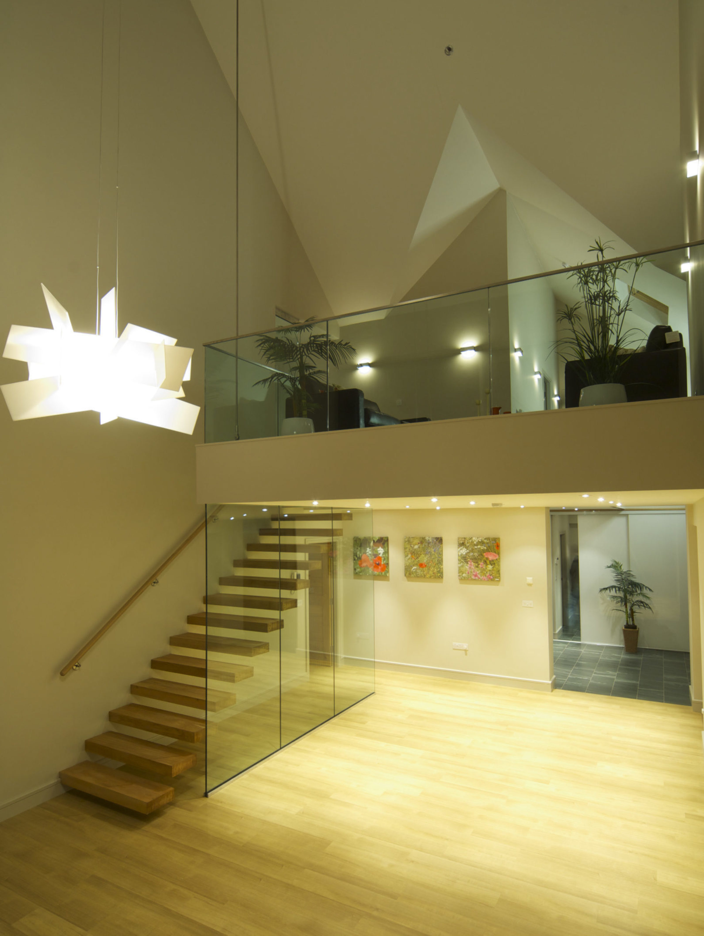 We set out to incorporate some well engineered — eye catching interior features such as the suspended mezzanine floor and cantilever staircase which set off the striking full height atrium.